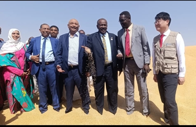 دشن والي الولاية الشمالية عابدين عوض الله ووزير الزراعة الإتحادي ابوبكر البشرى والسيد مأمون البرير حصاد محصول القمح بمشروع او. ام. بي للإنتاج الزراعي والحيواني تحت شعار الشمالية تقاتل بالانتاج بحضور عدد من قيادات الأجهزة الحكومية والأمنية بمنطقة التيتي.
