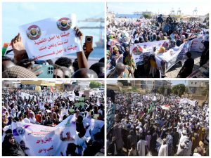 كان المشهد مؤثرا ورائعا جحافل بشرية علي امتداد البصر تناصر الجيش في همه وعزيمة من خلال مواكب تاريخية تلامس عنان السماء في العديد من ولايات البلاد ومدن امدرمان ومدني و بورتسودان وعطبرة والابيض ودنقلا بل حتي القري الصغيرة والفرقان والمهجر تندد بالتدخل السافر في السودان وتلعن دولة الشر.