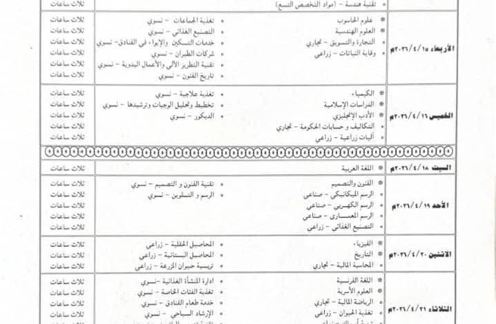 إعلان جدول امتحانات الشهادة الثانوية للهام 2026م
