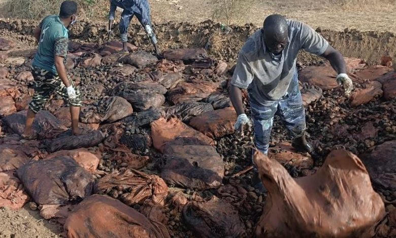 وقاية النباتات بوزارة الإنتاج بسنار تبيد (120) جوال بطاطس زنة (50)كيلو مهربه من احد دول الجوار